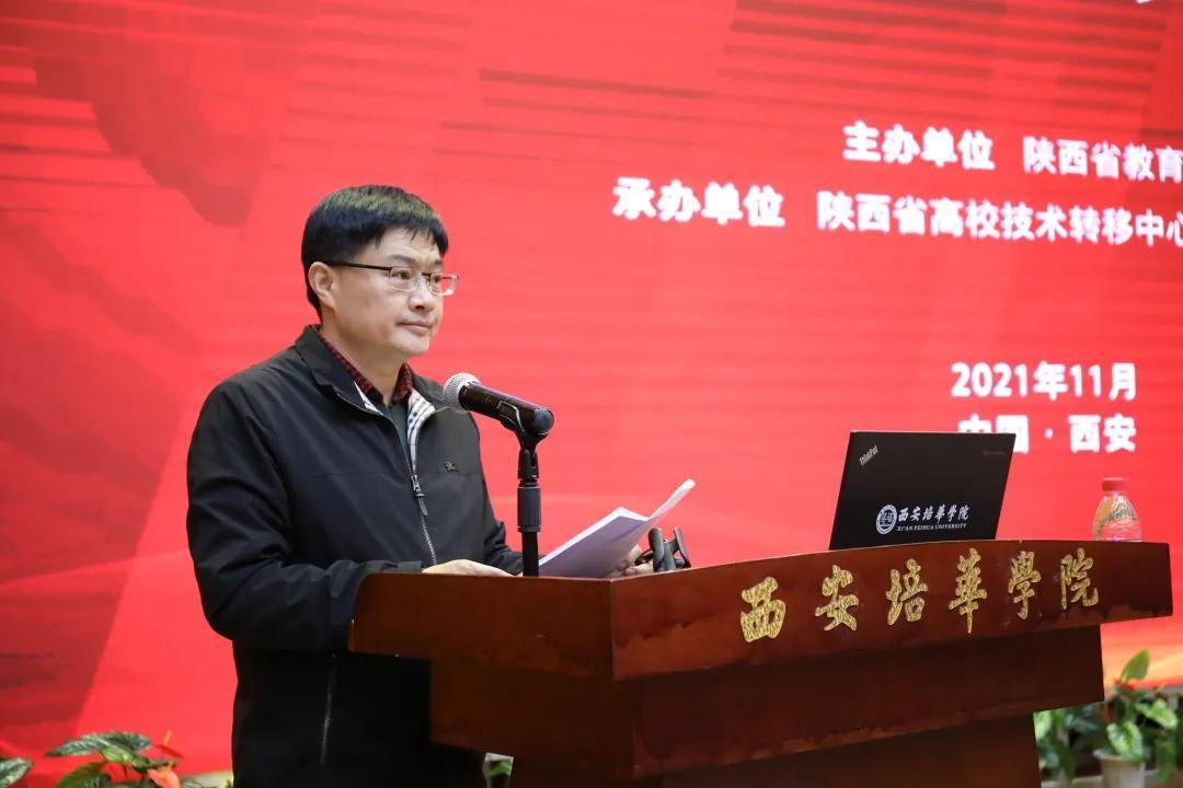 陕西省教育厅科技处处长朱晓冬、上海交通大学技术转移办公室主任刘群彦(线上);西安培华学院理事长姜波,副校长刘越莲,科研管理中心主任王西安,陕西省高校技术转移中心工作人员以及来自省内各地市高校100余名相关技术经理人参培教师出席了本次活动。陕西省高校技术转移中心主任田鹏主持开班仪式。
