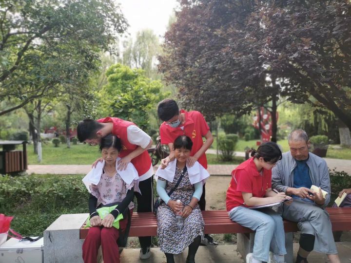 在三下乡的12天里,大家都做了很多工作,分工明确,安排具体。期间,实践队员先后前往了堰河村、陵杨村,北郭村、养老院等地点开展活动,具体有问卷调查,中医按摩,艾灸,耳穴埋籽,表演洗手操和拍拍操,举行老年常见病讲座,疫苗注射志愿服务等。