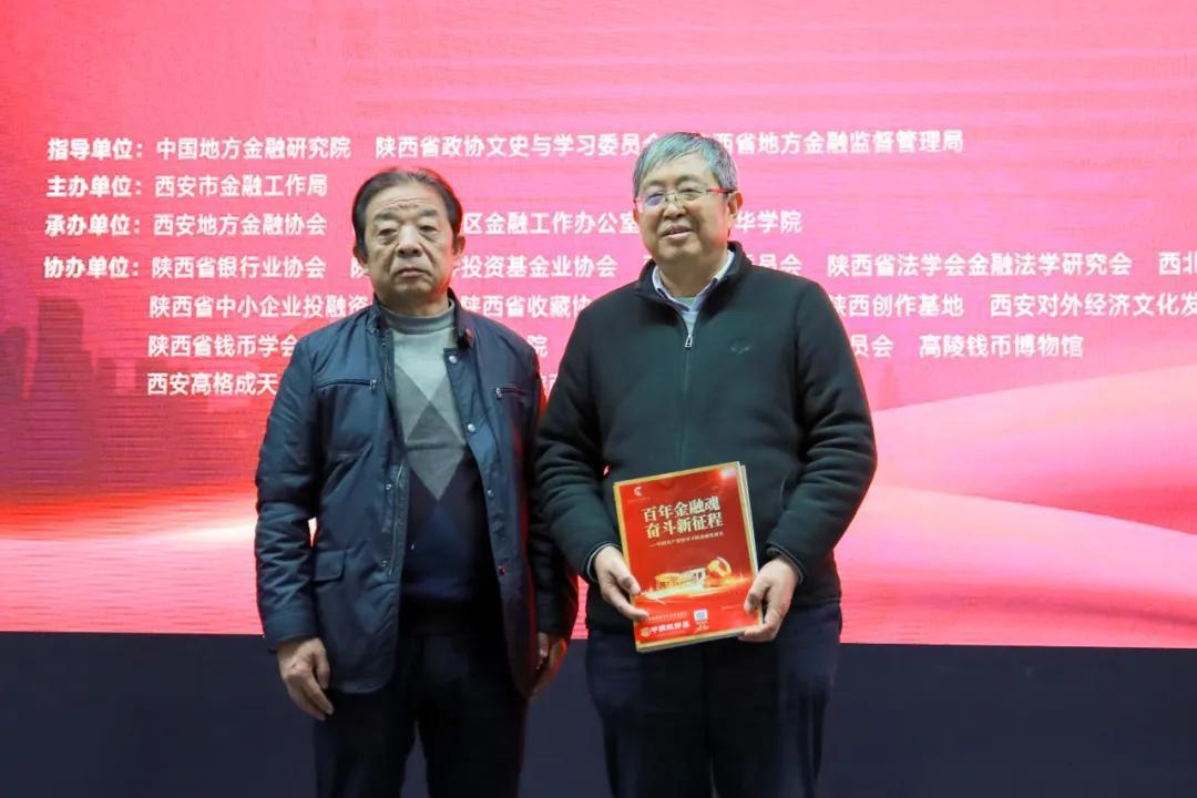 西安金融仲裁院理事长常西岭向培华赠送金融资料