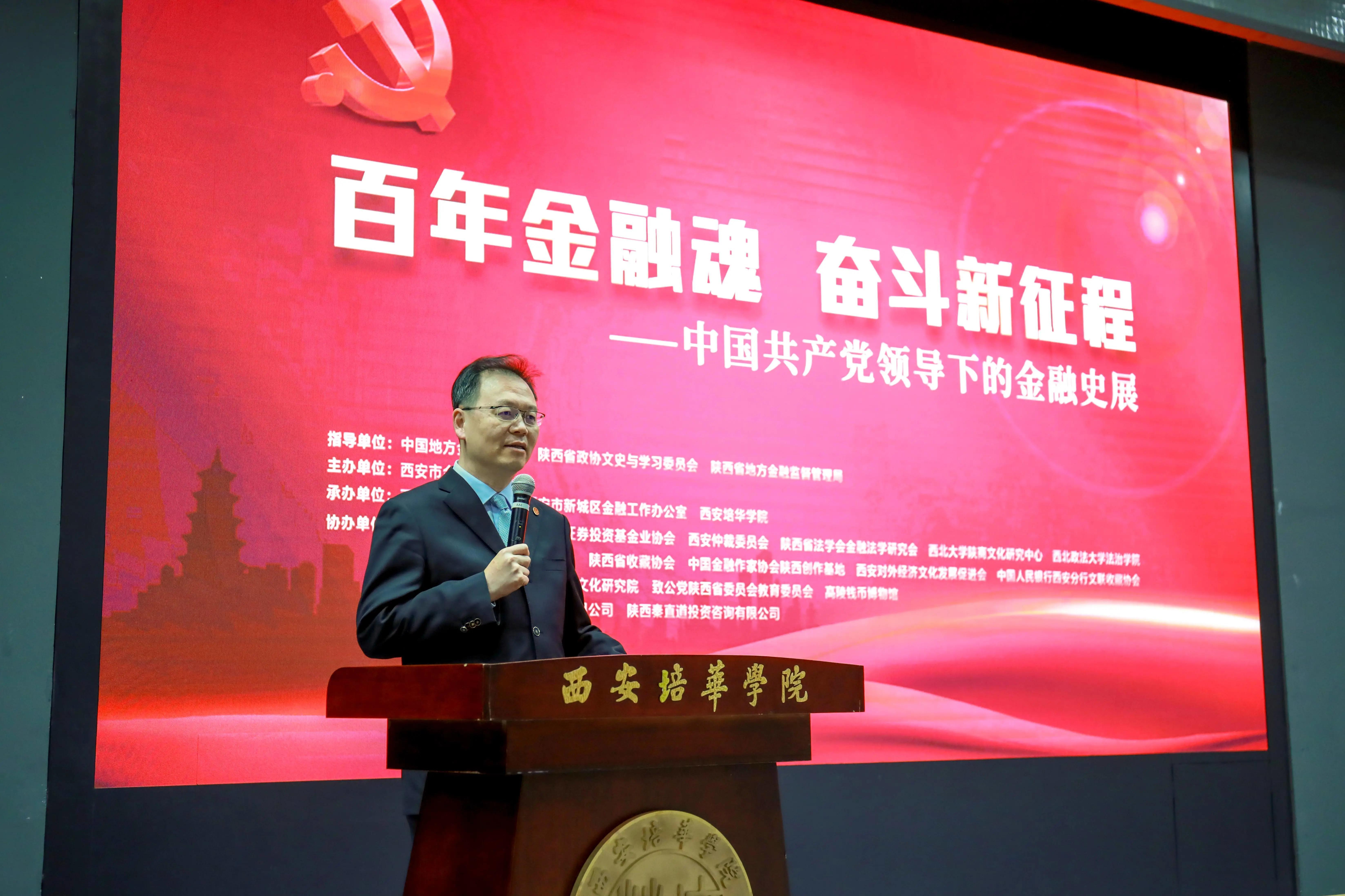 11月30日,由西安市金融工作局主办,西安地方金融协会、西安市新城区金融工作办公室与西安培华学院承办的“百年金融魂•奋斗新征程——中国共产党领导下的金融史展”,在汇知楼阳光厅举行。陕西金融作家协会副主席赵晓舟主持活动。