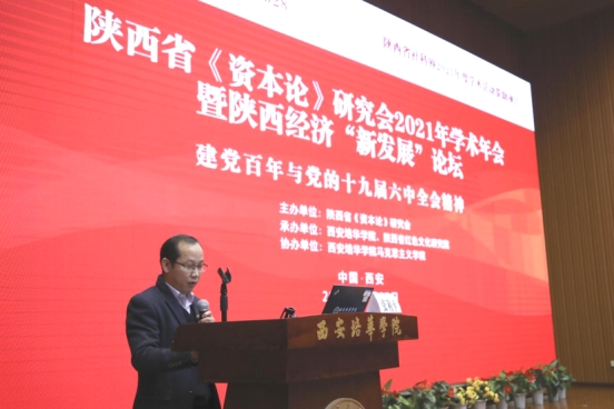 11月27日,陕西省《资本论》研究会2021年学术年会暨陕西经济“新发展”论坛在西安培华学院图书馆报告厅举办。本次学术年会由陕西省《资本论》研究会主办,西安培华学院、陕西省红色文化研究院承办,西安培华学院马克思主义学院协办。来自西安交通大学、陕西师范大学、西北工业大学、西北大学、西北农林科技大学、西安石油大学、西安工业大学、西安财经大学、西安科技大学、中共陕西省委党校、陕西省社科院等单位50余名专家学者以及学校马克思主义学院全体教师参加了此次会议。开幕式和颁奖环节由陕西省《资本论》研究会副会长、西北工业大学胡红安教授主持。