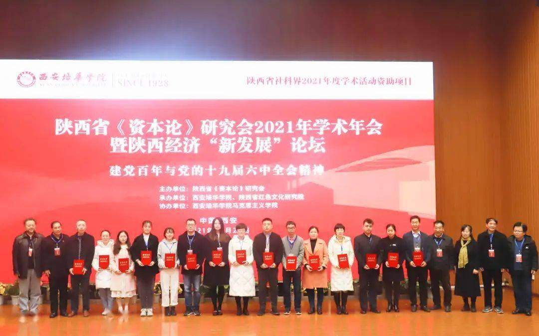 11月27日,陕西省《资本论》研究会2021年学术年会暨陕西经济“新发展”论坛在西安培华学院图书馆报告厅举办。本次学术年会由陕西省《资本论》研究会主办,西安培华学院、陕西省红色文化研究院承办,西安培华学院马克思主义学院协办。来自西安交通大学、陕西师范大学、西北工业大学、西北大学、西北农林科技大学、西安石油大学、西安工业大学、西安财经大学、西安科技大学、中共陕西省委党校、陕西省社科院等单位50余名专家学者以及我校马克思主义学院全体教师参加了此次会议。