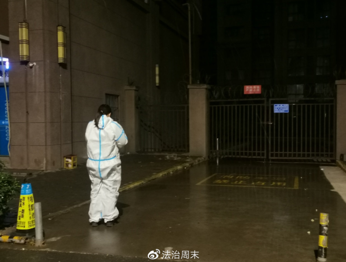 西安培华学院护考员王佳思老师在中风险区小区门口等候考生出门。
