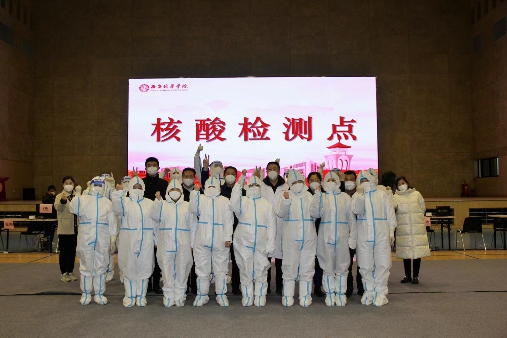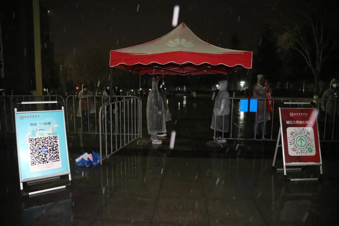 师生携手上阵,战风雪斗严寒。12月25日清晨,刺骨的寒风、凌乱的雪花拍打着西安培华学院600余名师生志愿者的身躯,他们历经一个不眠之夜,紧锣密鼓地布置考区,安排送考接考等工作,于清晨的风雪中查验每一位考生的防疫证明,确保考试平稳进行。全天考试结束后,他们又投入到连考生内的24000余名本校师生的第四轮核酸检测工作中。