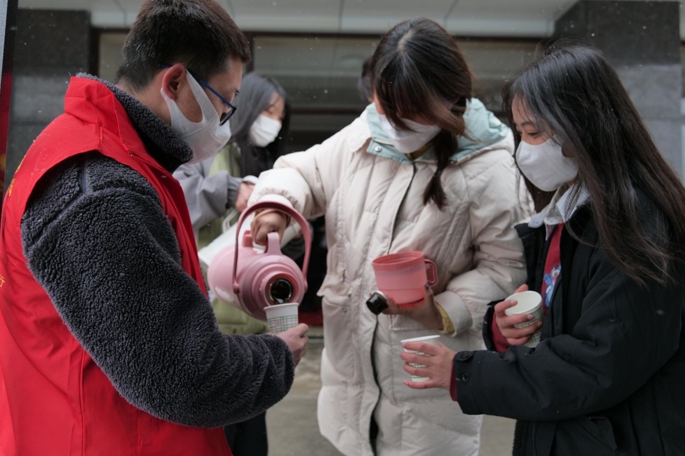 为志愿者及学生提供热水
