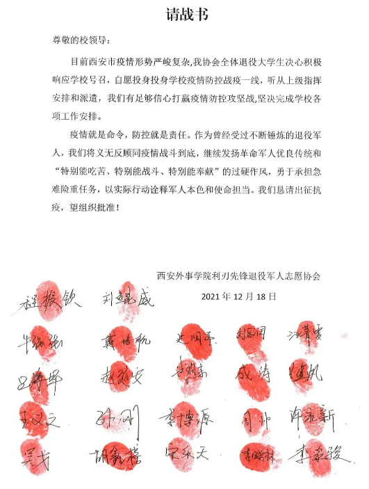 四、传承优良作风,时刻闻令而动。全省广大退役军人要弘扬革命军人优良传统,关键时刻站出来、困难时刻顶上去,按照属地疫情防控部署要求,以志愿服务形式加入基层防控力量体系,充分发挥各级各类专业志愿服务队优势,配合基层做好医疗救护、应急救援、便民服务、秩序维护、物资保障、心理疏导等工作,用具体行动诠释军人本色和使命担当。