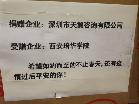 “希望如约而至的不止春天,还有疫情过后平安的你”,疫情无情人有情,向深圳市天翼咨询有限公司及涂艳女士表示感谢,祝愿疫情早日结束,一起感受千年古都的好客之情。