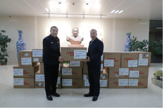 1月15日,深圳市天翼咨询有限公司涂艳女士通过西安培华学院监事会主席、工会主席徐国富教授向西安培华学院捐赠一次性医用口罩20000只,N95口罩10400只,助力学校防疫工作。学校党委书记罗新远,校办主任李健,党委宣传部部长柳雨,纪委副书记吉小平等接受了捐赠。