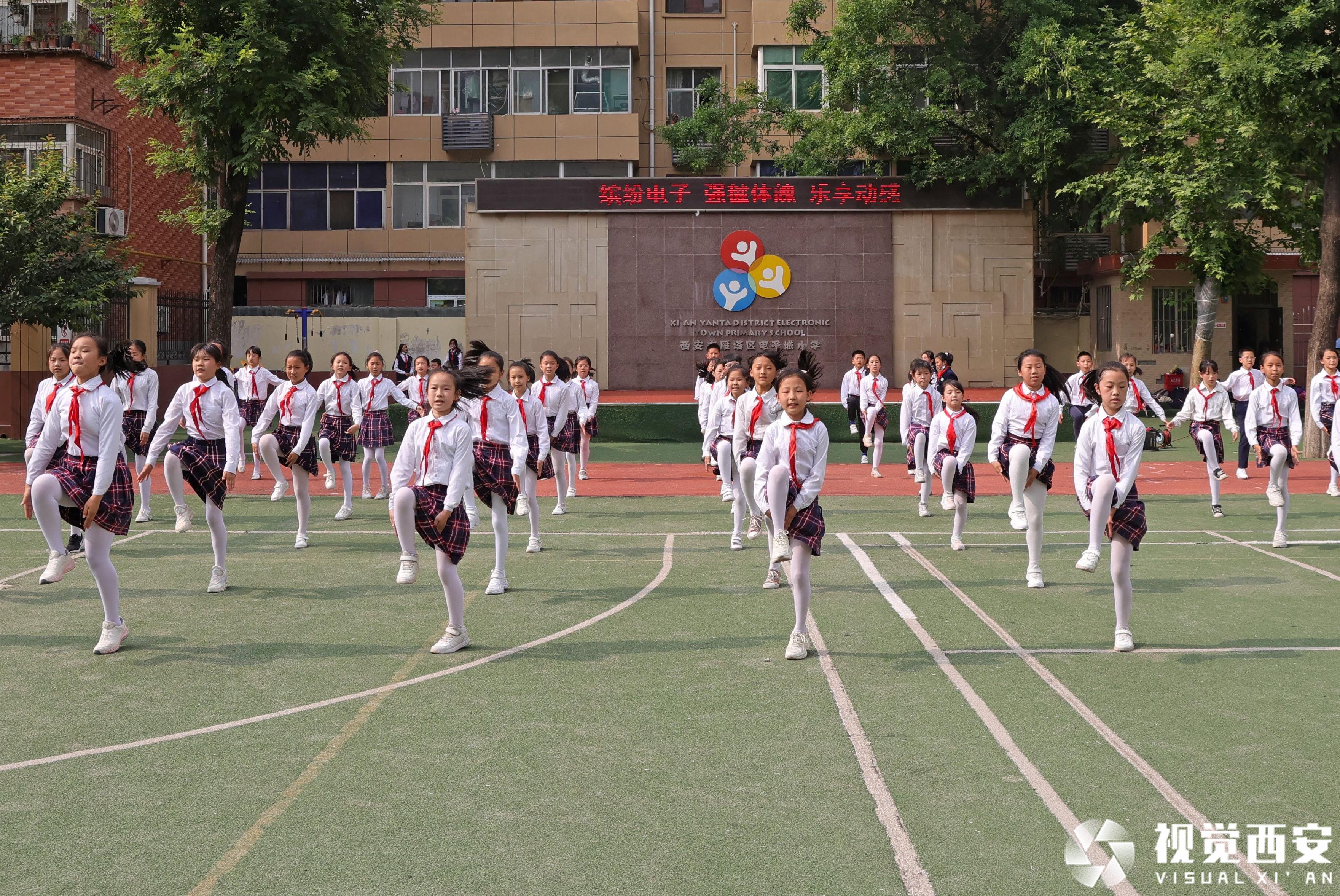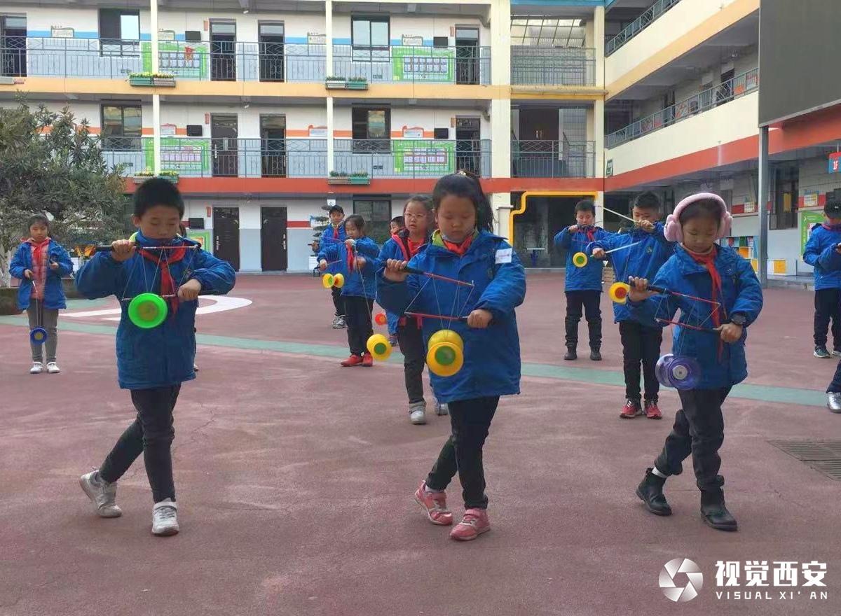 雁塔区电子城小学的孩子们很喜欢跳毽子操。