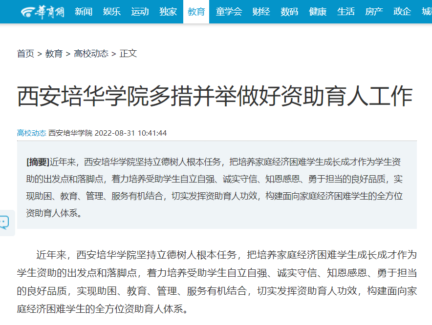 近年来,西安培华学院坚持立德树人根本任务,把培养家庭经济困难学生成长成才作为学生资助的出发点和落脚点,着力培养受助学生自立自强、诚实守信、知恩感恩、勇于担当的良好品质,实现助困、教育、管理、服务有机结合,切实发挥资助育人功效,构建面向家庭经济困难学生的全方位资助育人体系。