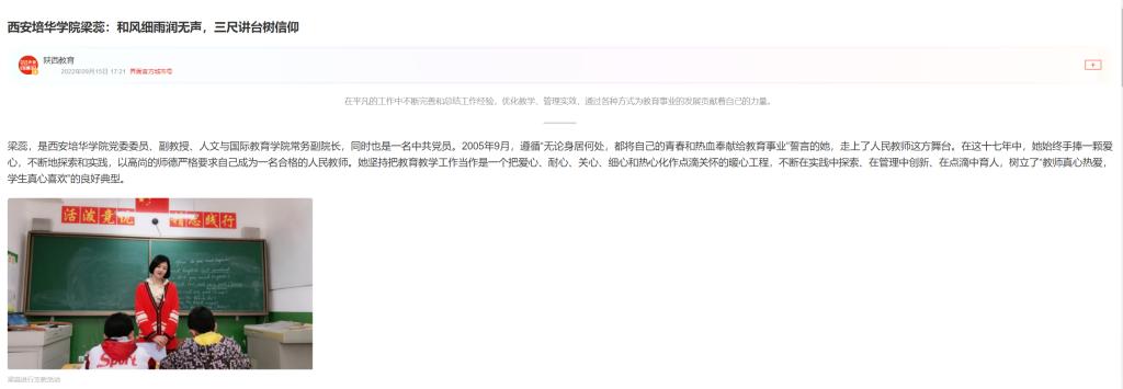 界面新闻:西安培华学院梁蕊:和风细雨润无声,三尺讲台树信仰