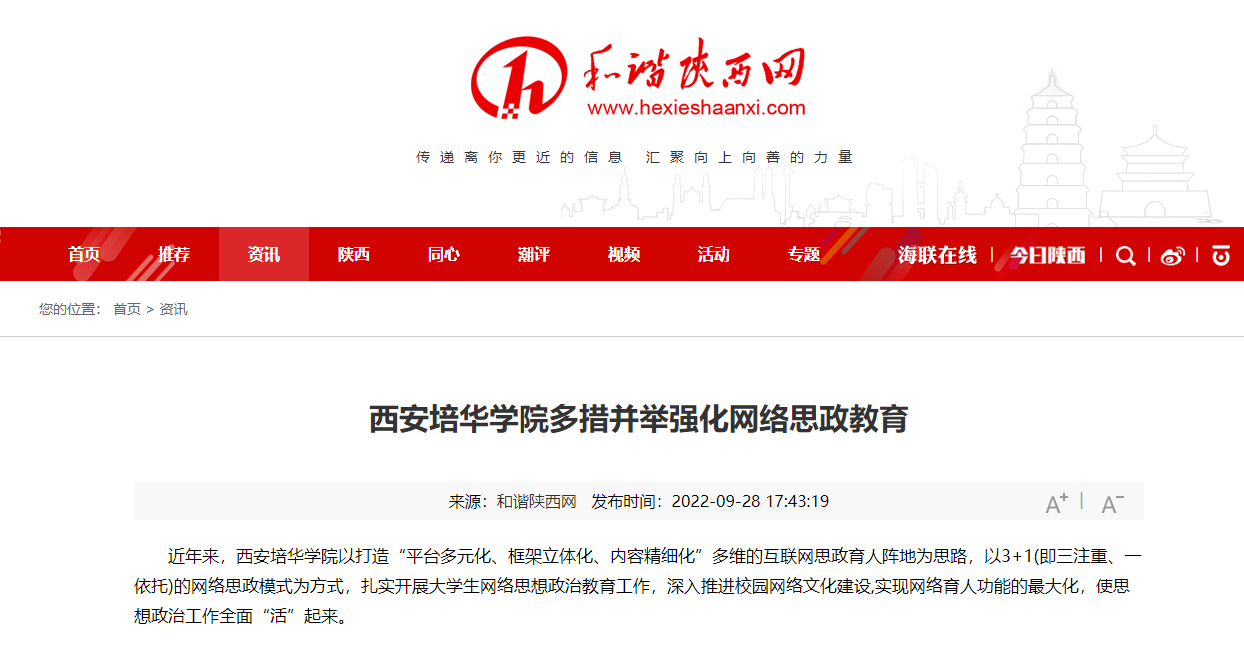 近年来,西安培华学院以打造“平台多元化、框架立体化、内容精细化”多维的互联网思政育人阵地为思路,以3+1(即三注重、一依托)的网络思政模式为方式,扎实开展大学生网络思想政治教育工作,深入推进校园网络文化建设,实现网络育人功能的最大化,使思想政治工作全面“活”起来。