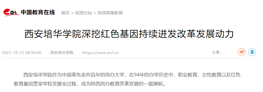 西安培华学院作为中国率先走向百年的民办大学,在94年的办学历史中,职业教育、女性教育以及红色教育基因贯穿学校发展全过程,成为陕西民办教育改革发展的一面旗帜。