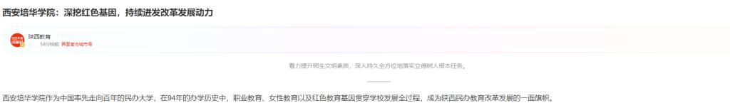 西安培华学院作为中国率先走向百年的民办大学,在94年的办学历史中,职业教育、女性教育以及红色教育基因贯穿学校发展全过程,成为陕西民办教育改革发展的一面旗帜。