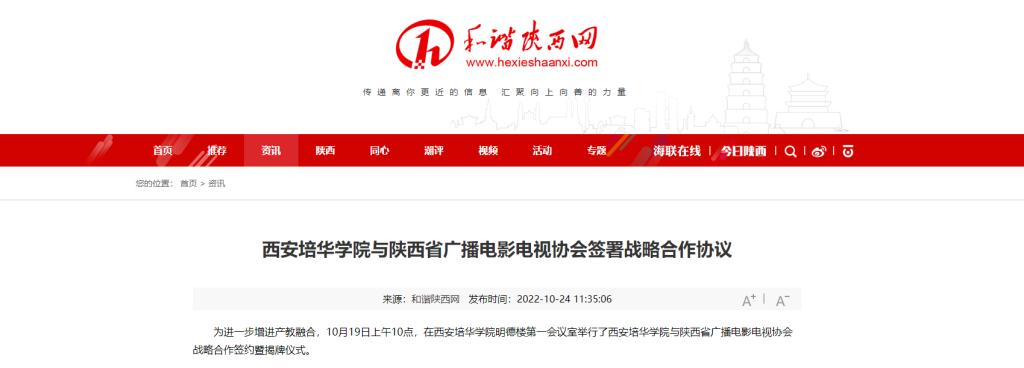 为进一步增进产教融合,10月19日上午10点,在西安培华学院明德楼第一会议室举行了西安培华学院与陕西省广播电影电视协会战略合作签约暨揭牌仪式。