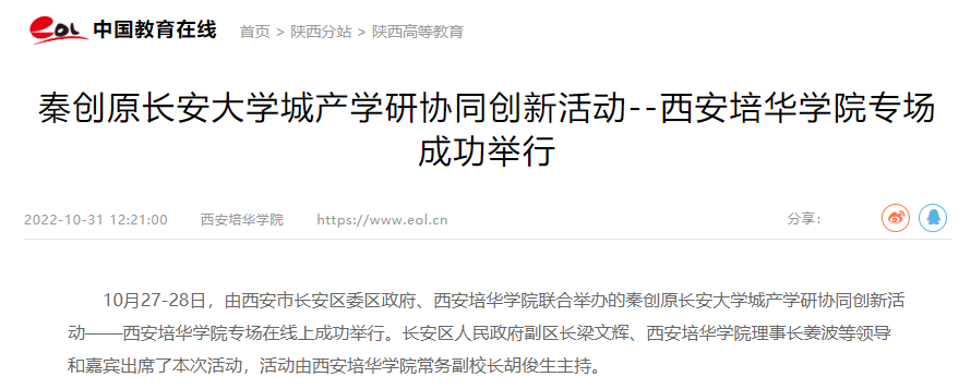 中国教育在线:秦创原长安大学城产学研协同创新活动--西安培华学院专场成功举行