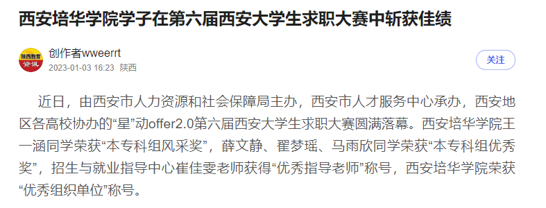 百度:西安培华学院学子在第六届西安大学生求职大赛中斩获佳绩