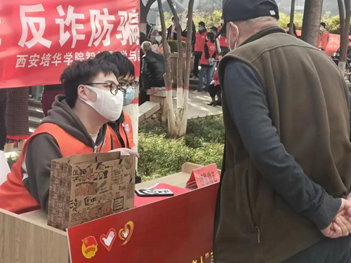 会计与金融学院青年志愿者协会和法律服务中心的同学们,通过在点位醒目位置摆放宣传海报和折页开展全方位的反诈宣传,提醒居民加强个人信息和账户保护,避免被不法分子诈骗钱财,要积极保护自身财产和合法权益。