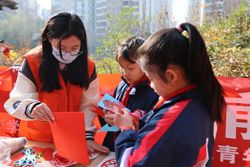 一张桌子、一把剪刀、一沓红纸,经过人文与国际教育学院志愿者们的一双巧手,一幅幅“玉兔迎春”的剪纸作品就呈现在了居民眼前,为非遗传承注入新的活力。