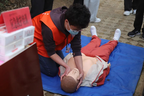 活动现场,校红十字会的同学们详细讲解了心肺复苏术、气道异物梗阻等急救知识,并利用模拟人演示了心肺复苏、气道异物梗阻的操作方法和动作技巧,帮助大家掌握熟悉每一个操作环节,让现场社区居民充分意识到“黄金四分钟”的重要性。真正做到人人学急救,急救为人人。