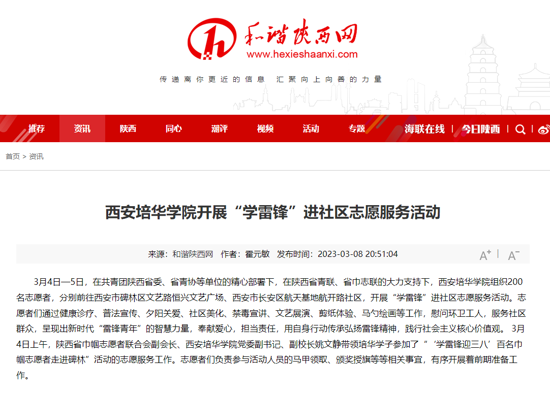和谐陕西网:西安培华学院开展“学雷锋”进社区志愿服务活动