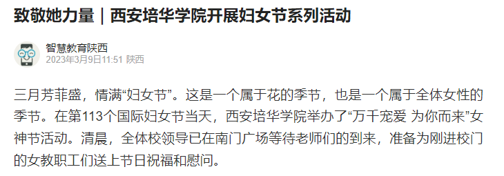 三月芳菲盛,情满“妇女节”。这是一个属于花的季节,也是一个属于全体女性的季节。在第113个国际妇女节当天,学校举办了“万千宠爱 为你而来”女神节活动。清晨,全体校领导已在南门广场等待老师们的到来,准备为刚进校门的女教职工们送上节日祝福和慰问。