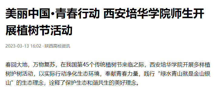 今日头条:美丽中国·青春行动|西安培华学院师生开展植树节活动