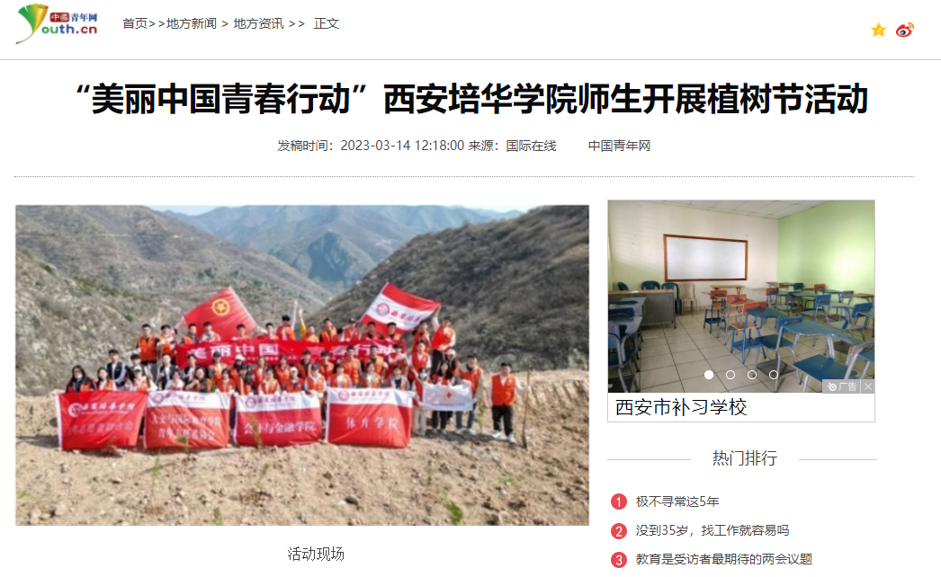 中国青年网:“美丽中国青春行动”西安培华学院师生开展植树节活动