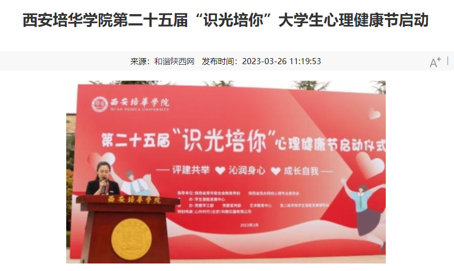 和谐陕西网:西安培华学院第二十五届“识光培你”大学生心理健康节启动