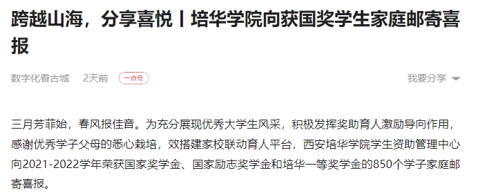 一点资讯:跨越山海,分享喜悦丨培华学院向获国奖学生家庭邮寄喜报
