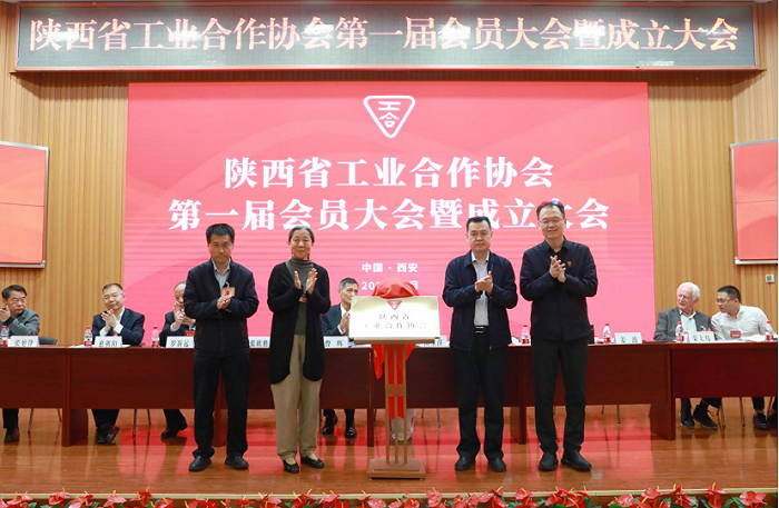 与会领导为新当选的理事长、监事长、副理事长以及秘书长颁发聘书。田玉萍、单耀峰、张欣胜、姜波等同志共同为陕西省工业合作协会揭牌。西安纺织控股有限责任公司纪委书记杨柳宣读了陕西省人大常委会原副主任、省政府原副省长李金柱同志向大会发来的贺信。