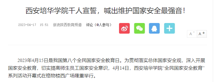 新浪新闻:西安培华学院千人宣誓,喊出维护国家安全最强音!