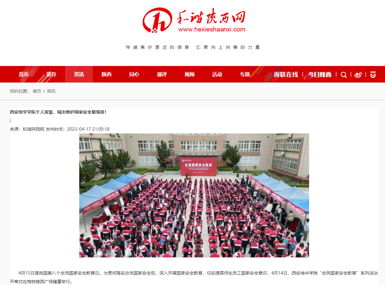在国家安全宣传教育月期间,西安培华学院将通过专题讲座、安全教育巡展、主题短视频征集等系列活动,切实增强全民国家安全意识,进一步推动总体国家安全观教育在校园落地落实。