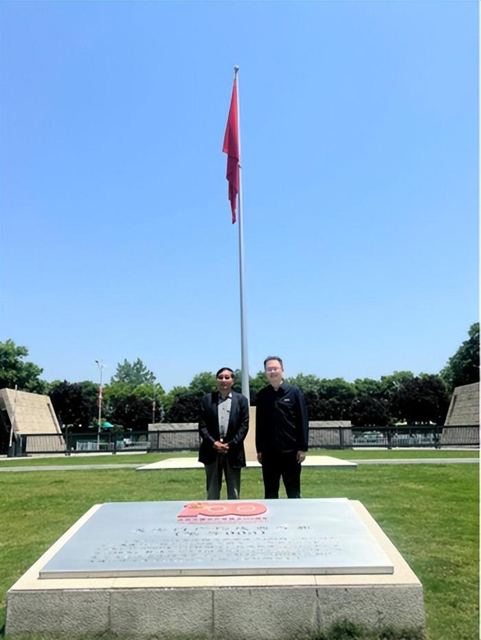 会后,西安培华学院理事长姜波带领参会嘉宾和部分学会负责人参观了竖立在学校东门的“庆祝中国共产党成立100周年天安门广场庆典红旗”并集体合影留念。