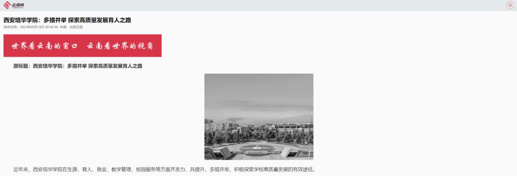 近年来,西安培华学院在生源、育人、就业、教学管理、校园服务等方面齐发力、共提升,多措并举,积极探索学校高质量发展的有效途径。