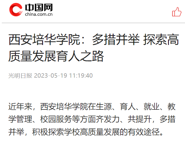 近年来,西安培华学院在生源、育人、就业、教学管理、校园服务等方面齐发力、共提升,多措并举,积极探索学校高质量发展的有效途径。