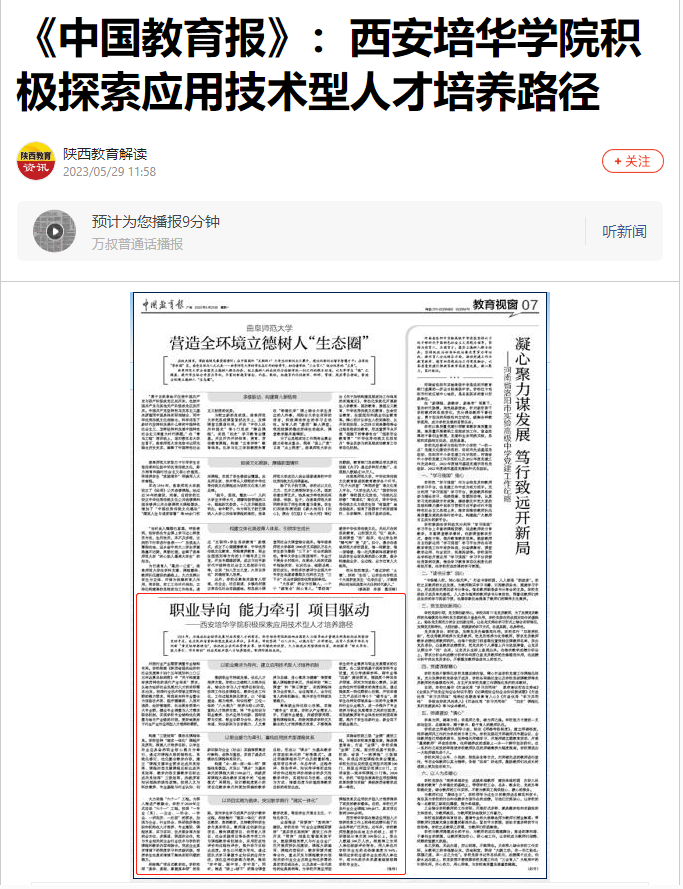 搜狐新闻:《中国教育报》:西安培华学院积极探索应用技术型人才培养路径