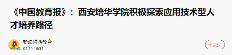 2014年,为适应社会经济发展对应用型人才的需求,西安培华学院积极响应国家大力倡导地方普通本科高校向应用型转变的号召,成为陕西省首批转型发展试点单位。多年来,学校坚持“以人为本,以德为先”办学理念,在育人实践中传承与创新“黄炎培职教理念”,依托校企共同体资源共享、协同增效的优势,大力推进应用型课程改革,积极探索“职业导向、能力牵引、项目驱动”的应用技术型人才培养路径,取得阶段性成效。