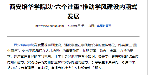 华禹教育网:西安培华学院以“六个注重”推动学风建设内涵式发展