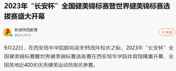 新浪新闻:2023“长安杯”全国健美锦标赛暨世界健美锦标赛选拔赛盛大开幕