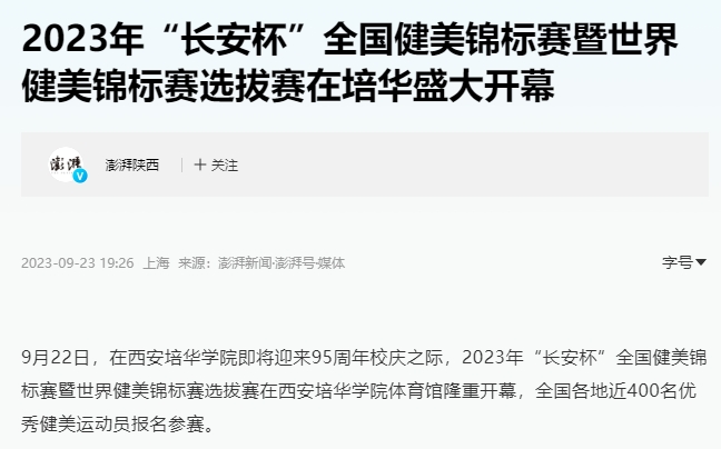 澎湃新闻:2023年“长安杯”全国健美锦标赛暨世界健美锦标赛选拔赛在培华盛大开幕