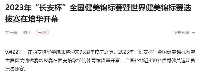 一点资讯:2023年“长安杯”全国健美锦标赛暨世界健美锦标赛选拔赛在培华开幕