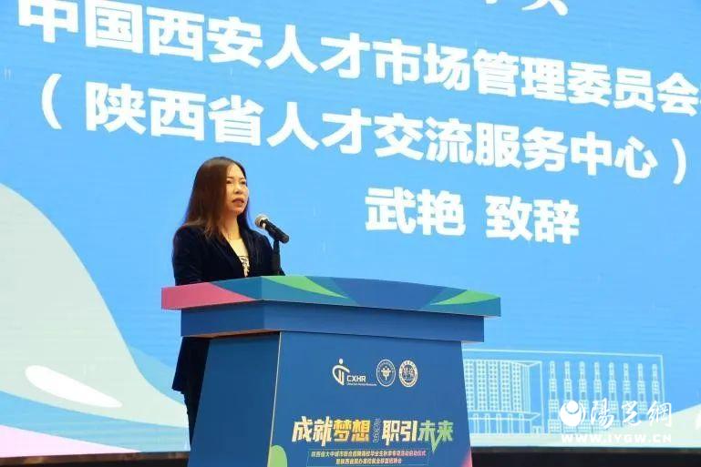 最后,由中国西安人才市场、陕西省人才交流服务中心副主任武艳致辞,“大中城市联合招聘是由人社部推出的面向高校毕业生的专项活动,致力于搭建用人单位和高校毕业生的沟通桥梁,进一步整合各方资源,创新招聘模式,为用人单位和求职者搭建好平台,帮助高校毕业生等青年群体尽快尽早就业。”