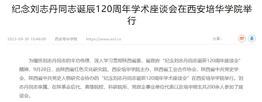 中国教育在线:纪念刘志丹同志诞辰120周年学术座谈会在西安培华学院举行