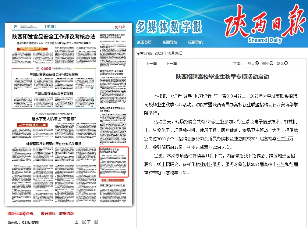 陕西日报:陕西招聘高校毕业生秋季专项活动启动