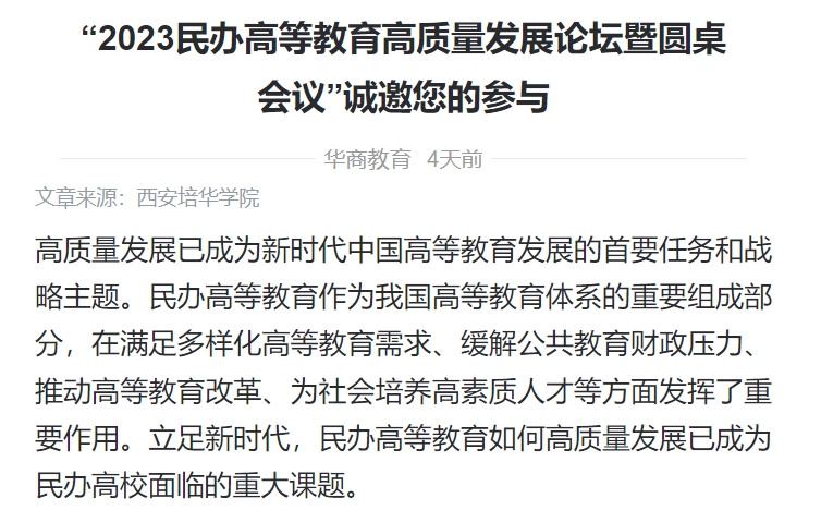 华商教育:邀请函|“2023民办高等教育高质量发展论坛暨圆桌会议”诚邀您的参与