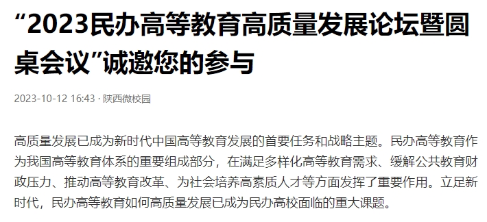 今日头条:邀请函|“2023民办高等教育高质量发展论坛暨圆桌会议”诚邀您的参与