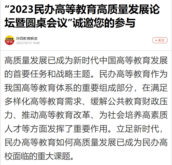 搜狐新闻:邀请函|“2023民办高等教育高质量发展论坛暨圆桌会议”诚邀您的参与
