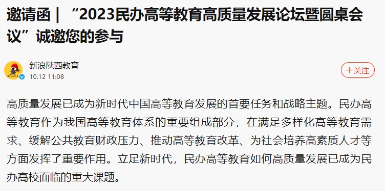 新浪新闻:邀请函|“2023民办高等教育高质量发展论坛暨圆桌会议”诚邀您的参与