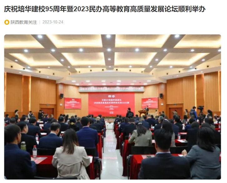 为庆祝培华建校95周年,助力学校高质量发展,10月22日,由陕西省高等教育学会、陕西省民办教育协会主办、西安培华学院承办的“2023民办高等教育高质量发展论坛”在西安培华学院明德楼报告厅举行。高等教育专家学者、民办高校负责人、行业企业专家等 齐聚一堂,通过线下论坛交流、线上直播互动的方式,分享办学经验、探讨发展路径,研讨民办高校高质量发展的策略。本次论坛以“民办高等教育高质量发展”为主题,深入探讨民办高等教育如何在教育强国进程中发挥更大作用,更好地在应对发展挑战、破解时代性课题、服务区域创新发展、实现高质量发展等方面如何发挥高等教育不可替代的积极作用具有重要意义。